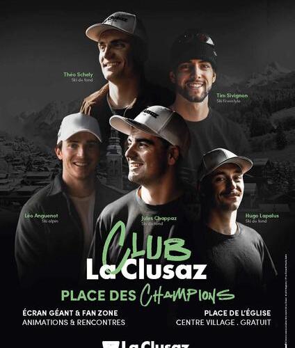 À l’occasion des Jeux, La Clusaz lance le « Club La Clusaz » : un rendez-vous place de l’église pour vibrer ensemble et encourager les athlètes de la station.