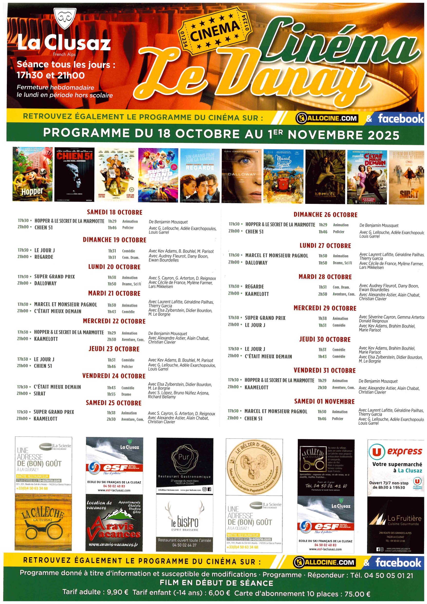 Le cinéma "Le Danay" est équipé d'un écran panoramique et d'un son dolby stéréo digital.