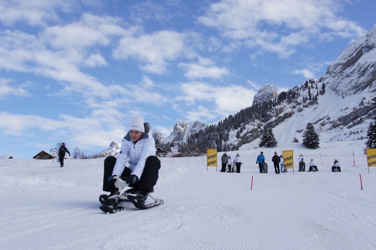 Parcourez 5kms de piste depuis le Col de la Croix-Fry jusqu'au village de La Clusaz à bord de votre luge à volant équipée de frein !