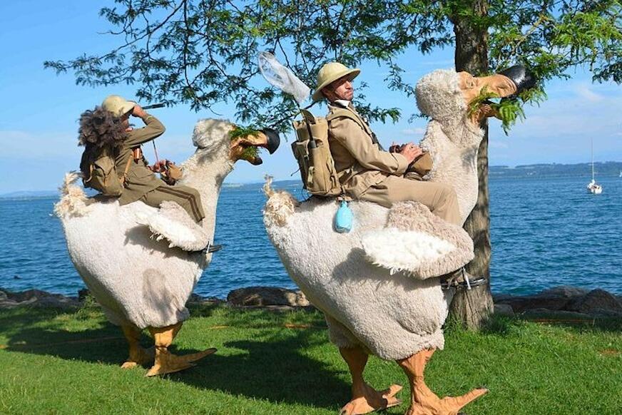 Riding on the backs of dodos, this expedition travels through towns and villages in search of new tribes. Curious and clumsy, they want to know everything about you: your rituals, customs, eating habits, political leanings, etc. The great census has begun, and together, they will push back the boundaries of science…