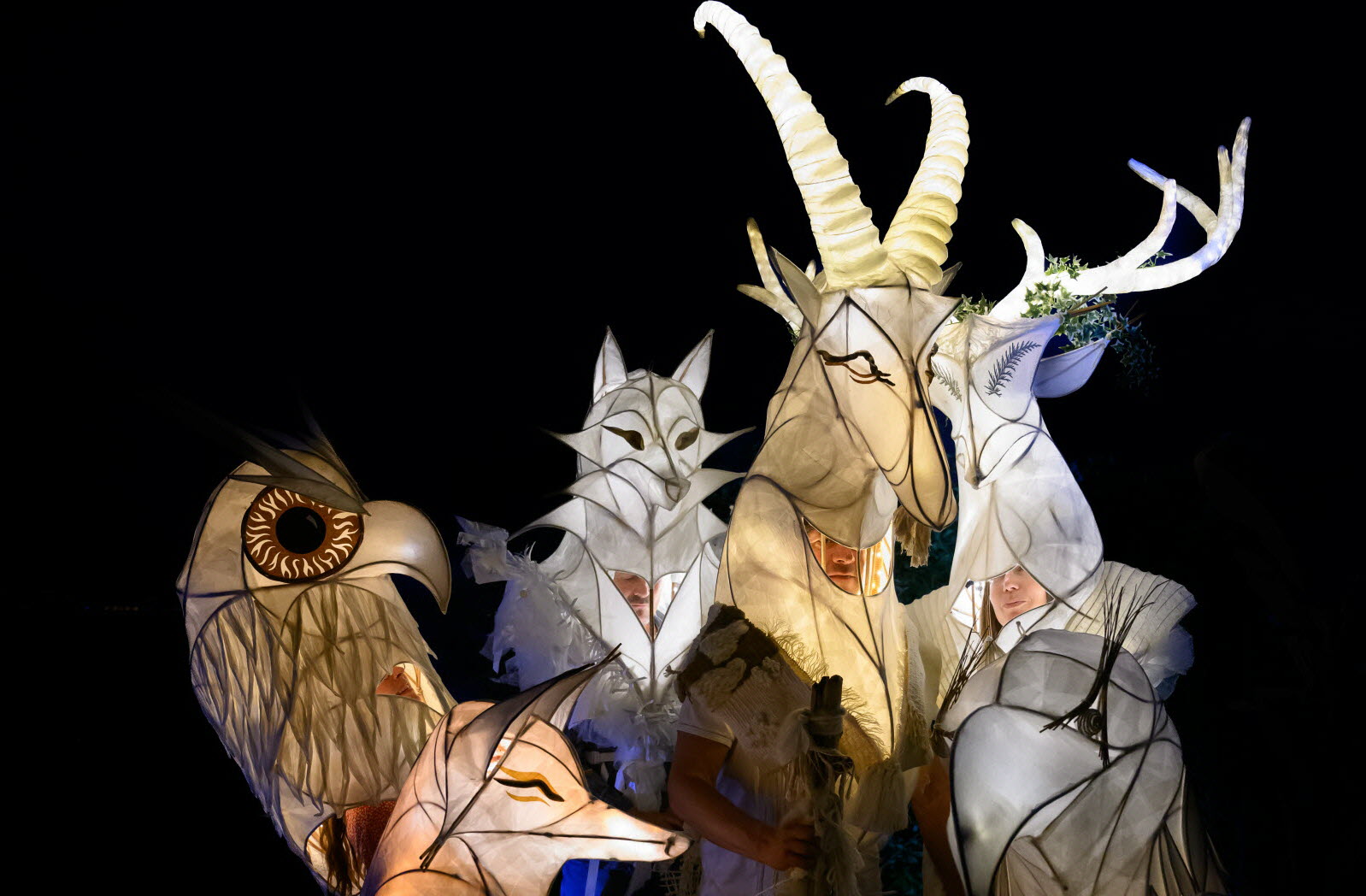 It is said that the People of Light appear between day and night, at the shift from light to darkness. Like a lighthouse guiding the way, the People of Light extend the day. Spirits of venerable Alpine animals, the People of Light bring together an enchanted bestiary: the wolf and the fox, the ibex and the deer, the owl and the golden eagle.