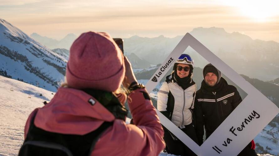 The sun is setting, the Aravis peaks are taking on color, the slopes are emptying and the village is lighting up. Normally, you'd put your skis away to keep warm, but tonight you're taking the Fernuy's last cabin up to the heights of the ski area.