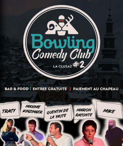 Retour Bowling Comedy Club 62 Route des Grandes Alpes 74220 La Clusaz Frans Tarifs Gratis entree. Opening Dinsdag 2 december 2025 van 20.00. Locatie