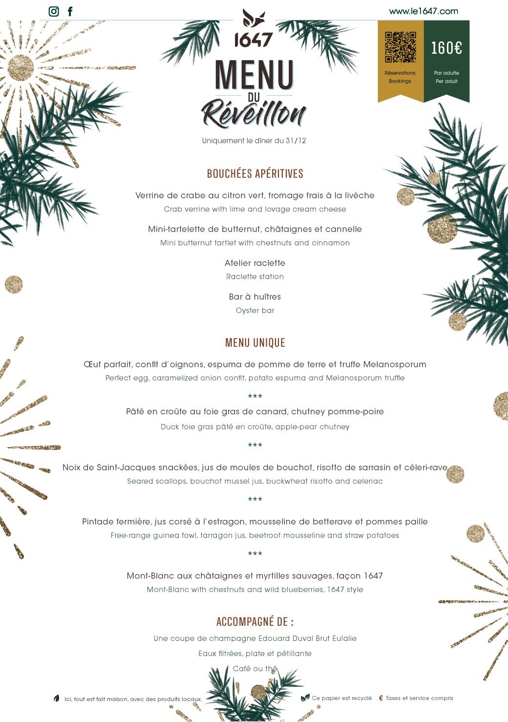 Le 1647 Plateau de Beauregard 74230 Thônes Engels, Chinees, Frans Opening Van 13/12/2025 tot en met 05/04/2026, iedere dag. Van 13/06 tot en met 20/09/2026, iedere dag. Tarifs Kindermenu: € 19 Dagschotel: € 22. Downloads Oudejaarsavondmenu – Le 1647-Thônes menu+du+rveillon+-+1647.jpg 212 KB Oudejaarsavond 2025-2026 nouvel-an-2025-20261. 48 KB Locatie
